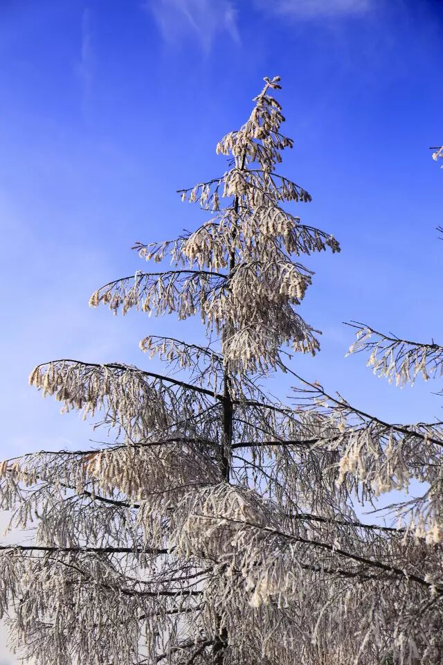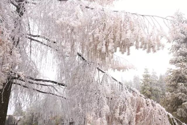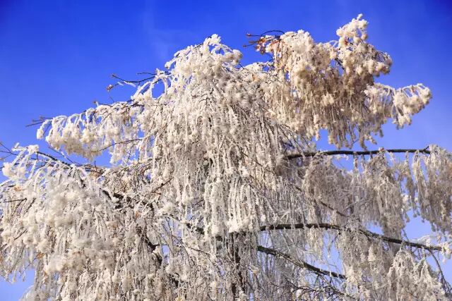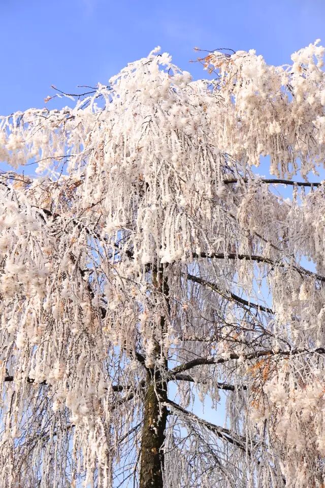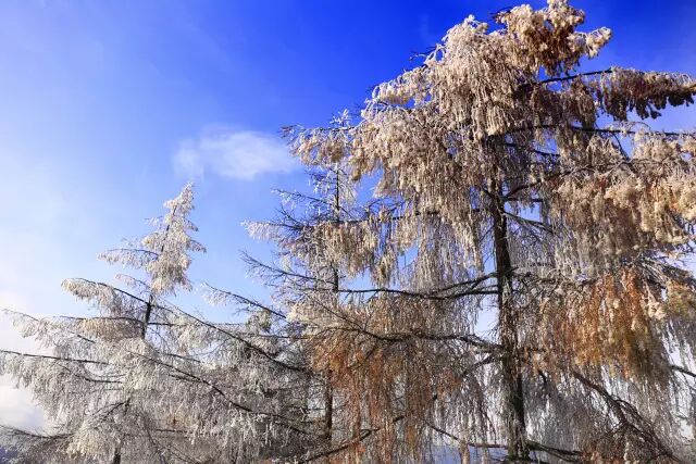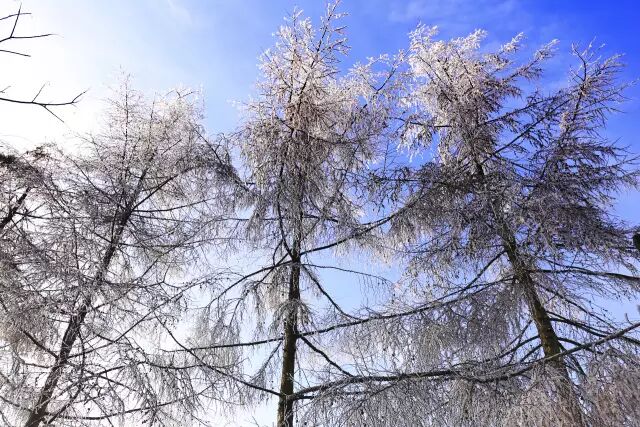 雾凇,俗称树挂,是低温时空气中水汽直接凝华,或过冷雾滴直接冻结在物体上的乳白色冰晶沉积物,是非常难得的自然奇观。