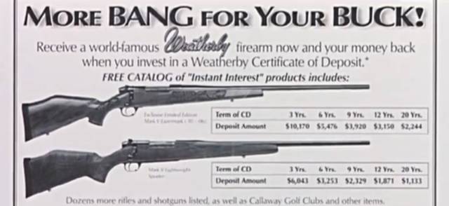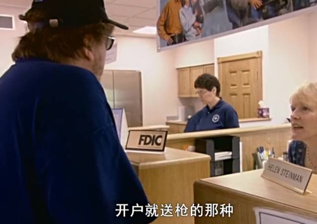 在片子的开头,一家美国银行正在促销:“如果你愿意在这家银行开一个账户,即可送一只手枪……房里至少有500款手枪任您挑选。”