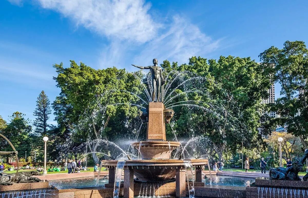 【海德公园】位于悉尼市中心的海德公园初建于1810年,已经近200年的历史,那里有大片洁净的草坪,百年以上的参天大树,是这里休闲的一个好去处。公园的中心是一个设计独特的喷水池。