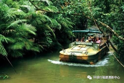 (游览时间约90分钟)前往参观【热带雨林】(单程车程约45分钟)。他是世界上最古老、面积最大的热带雨林之一,您可以乘座新奇的水陆两用车游览热带雨林,这是一种二战时期由军队遗留下来而后又经改造的水路两用战车。游客在导游(同时也是司机)的带领下乘坐此战车或穿梭于浓密的丛林之中观看澳洲松鼠和蜥蜴在你身边穿行的景观,或下浮于几米深的湖水之中欣赏那湖光晚霞下的美景以及远处时而浮出水面的咸水鳄和身边的小乌龟。驾驶兼生态解说员沿途会为游客详细历数雨林中稀奇古怪的植树共生方式, 树木的用途和奇特的野生动物等.共同探索大自然的奥秘,领略南半球的异国风情;还可以与澳洲土著民旅游亲密接触,欣赏土著民族歌舞。这里的舞台是用木头搭起,背景也由树木建成,顶上有棚子,视觉上很原始,却符合表演气氛。听着土著人用着“滴都丽都”吹奏起旋律,欣赏土著人激情劲舞。