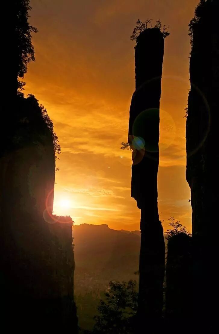 这是恩施大峡谷的五大奇观之一的绝壁环峰从。峰丛之上的“迎客松”张开她那宽广的双臂笑迎天下游客。“鞠躬笑迎天下客,颔首恭送环宇宾”,彰显了土家儿女的好客与朴实。绝壁环峰从配土家“迎客松”再加上恩施大峡谷日出,自然而然的形成了世界少有的奇景。