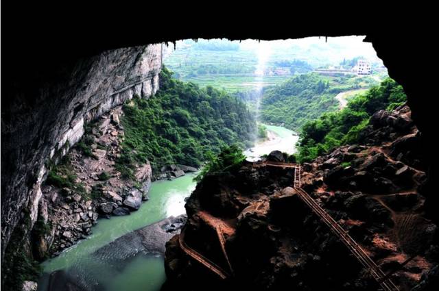 这个景点则是大峡谷中最为刺激惊险的景点“绝壁长廊”,又叫“绝壁栈道”,始建于2007年10月,全长488米,118个台阶,位于海拔1700余米、净高差300余米之绝壁山腰间。该工程既汲取了巴蜀古栈道营造法,又结合现代钢筋砼施工之先进工艺,科学安全,大气壮观,凝聚着当代开发创业者的勇气与智慧。当你沿着栈道游览,一路可以欣赏大武陵风光。
