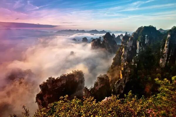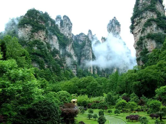 早餐后游览【袁家界景区】乘百龙天梯上山(72元/人已含)《阿凡达》外景拍摄地、哈利路亚山(又名乾坤柱)。