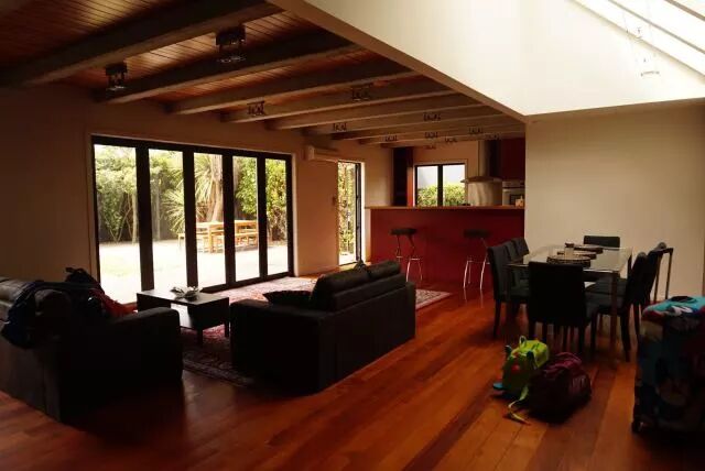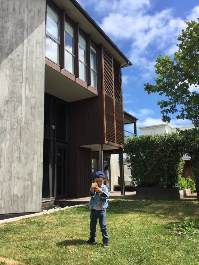 这次在基督城入住的民宿是一幢三层的现代简约风格的房子。房间有透亮的落地玻璃窗,光线十分充足,连接客厅还有一个很大的后院,草地郁郁葱葱,是孩子游戏玩耍的小天地。