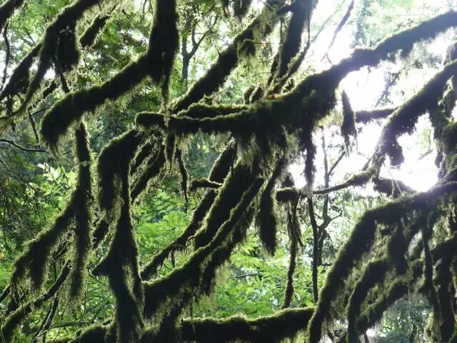 漫步在森林深处,像个闯入了古老世界的外来人。太阳漫过树顶,在地面上折射出奇特的光。