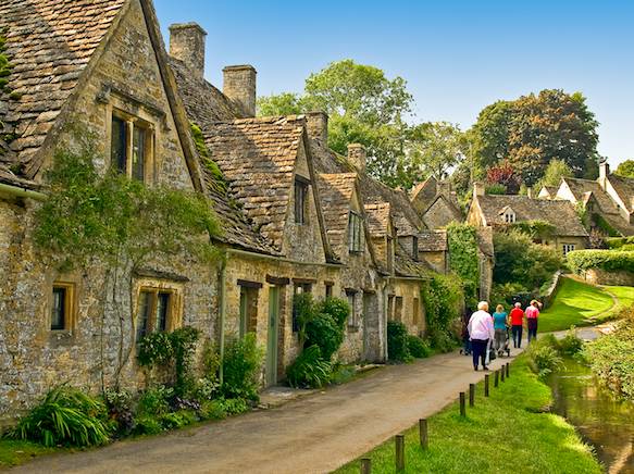 绵延的乡村风情与科茨沃尔德群山融合在一起,由“科茨沃尔德石”筑成的“蜂蜜石”房一座连着一座,使小镇保持着淳朴乡村景色。间或临街而立的那些覆盖着黑色厚实的茅草屋顶的小屋,门口的鲜花、藤蔓、草坪,令一切变成了“隐密的珍宝”。