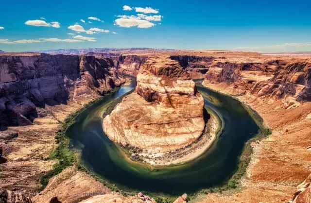 马蹄湾,被《国家地理杂志》评选出的全美十大最佳摄影景点之一,蓝天白云,碧水红岩,美不胜收。