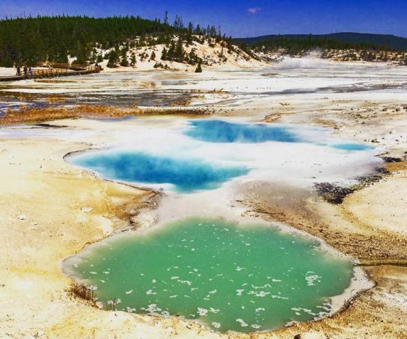 诺丽斯喷泉是黄石公园里最多变的间歇泉,也是最古老最热的地热区。而此区的间歇泉颜色也是非常丰富的,但是由于不稳定性,每年都会有新的温泉,也有老的喷泉死去。就如同生命一样,悄然的到来,优雅的死去。夏季的时候,清晨时分的冷气在与地热最高温的诺里斯盆地的热气相互缠绕碰撞,迸发出的烟雾弥漫,让人错觉,恍如置身于仙境。