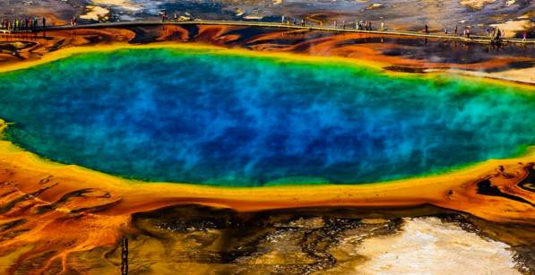 大棱镜温泉也被称为大彩虹温泉,是目前美国境内最大,世界第三大的温泉。而大棱镜温泉的没在于湖面的颜色会跟随季节而变化。在夏季,湖面会呈现橙色,红色或者黄色,这也是由于富含矿物质的水体中生活着藻类和含色素的细菌等微生物。所以也各位旅游大人们称为“上帝打翻了调色盘,把最美的色彩泼洒到了这里”。