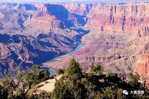 科罗拉多大峽谷之所以令人震撼,关键在于它的气势。据介绍,大峽谷平均宽度为16公里,窄的地方不说了,宽的地方可能一眼望不到对岸;平均深度超过1500米,最深处在2300米以上。更加令人惊叹的是,这样一个大峽谷,竟是由一条河流通过千万年的冲刷形成的!探究谷底,那条从科罗拉多州的落基山发源,流经犹他州、亚利桑那州、又向加利福尼亚州流去的科罗拉多河,如同一条缎带,正静静的流淌,谁能想象,当年它是用了多大的水力、多长的时间,将这高原硬生生切割成一个大峽谷!