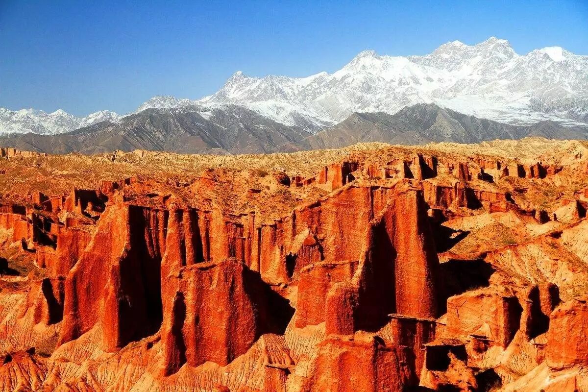 这里被称为“中国西部最美的丹霞地质奇景、中国罕见的远古岩盐地质绝景、中国独有的巨型岩溶蚀地质秘境”,是新疆“活的地质演变史博物馆”。