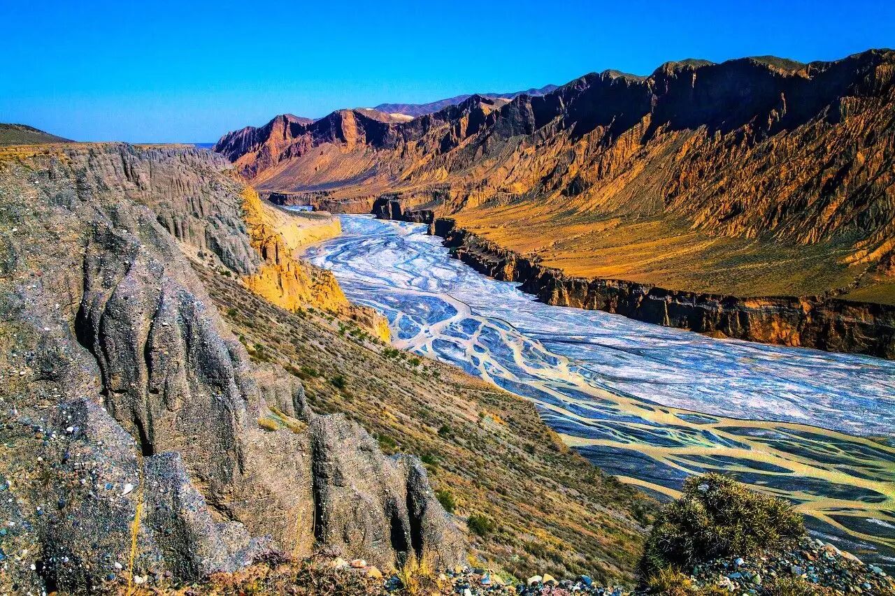清绿的河水在谷地汩汩流淌,连绵数十公里的峡谷风光,有惊无险的玛纳斯河大峡谷,走起来非常的轻松。