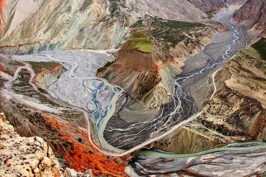 红色、灰色、黄色的山谷,宽广的河床,丰富而颜色迥异的各种植被,与黄山形成了一道亮丽的风景线。