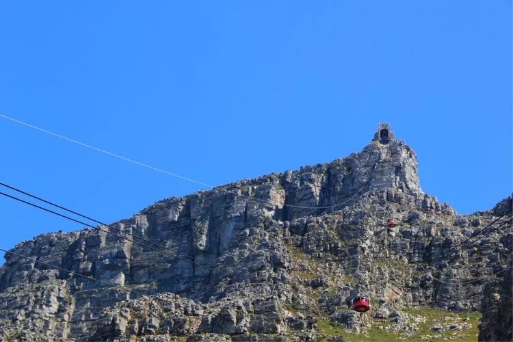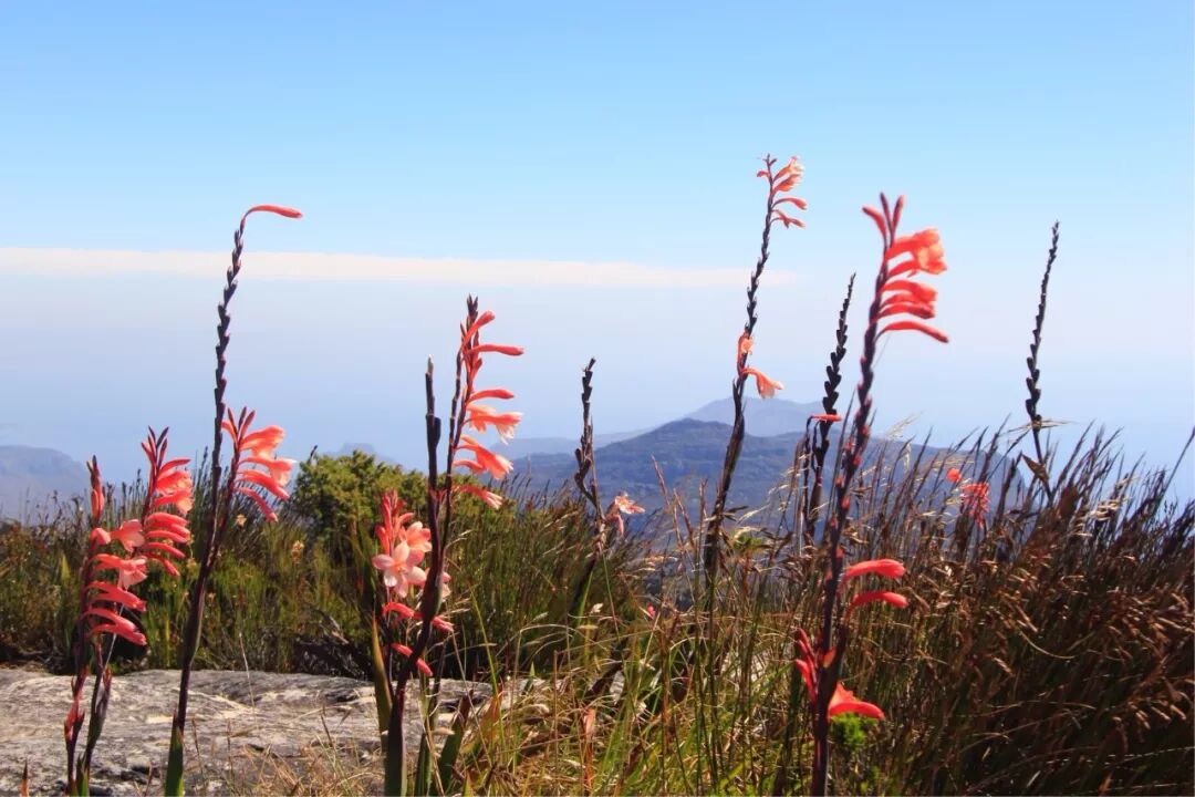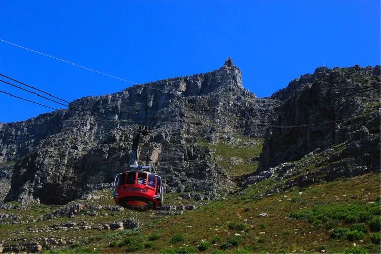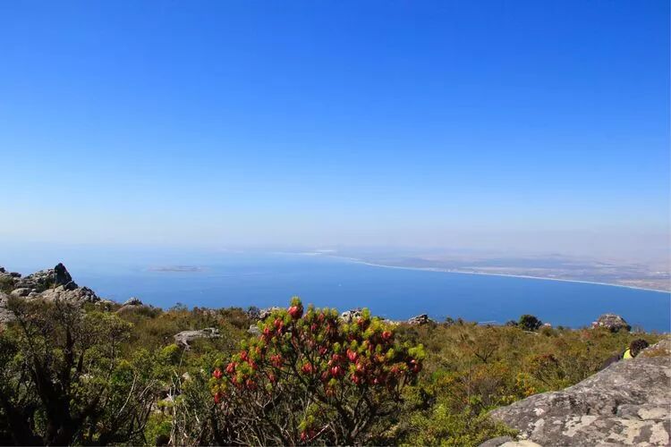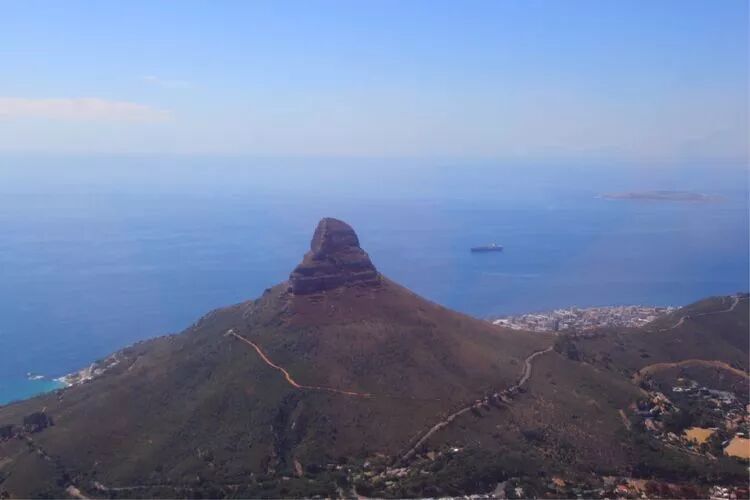 二魅,雄奇险峻的桌山。高度1080米的桌山,是开普敦的地标,山势陡峭,山顶平缓,极为独特。当地人称之为"上帝的餐桌",从南边海洋上吹来的水汽经常会在山顶聚集,形成"桌布"的奇观。本《美篇》封面就是这个场景。人如果在山下看山,戴帽子的得小心"帽子掉到沟沟头",在山上看景,可以把亚东那首《向往神鹰》的一句歌曲词改为"俯瞰山下美景,止不住热泪盈眶"。哈哈哈,乘缆车登顶,在"桌面"环游一周将近一小时,整个开普敦尽收眼底,确实美不胜收!