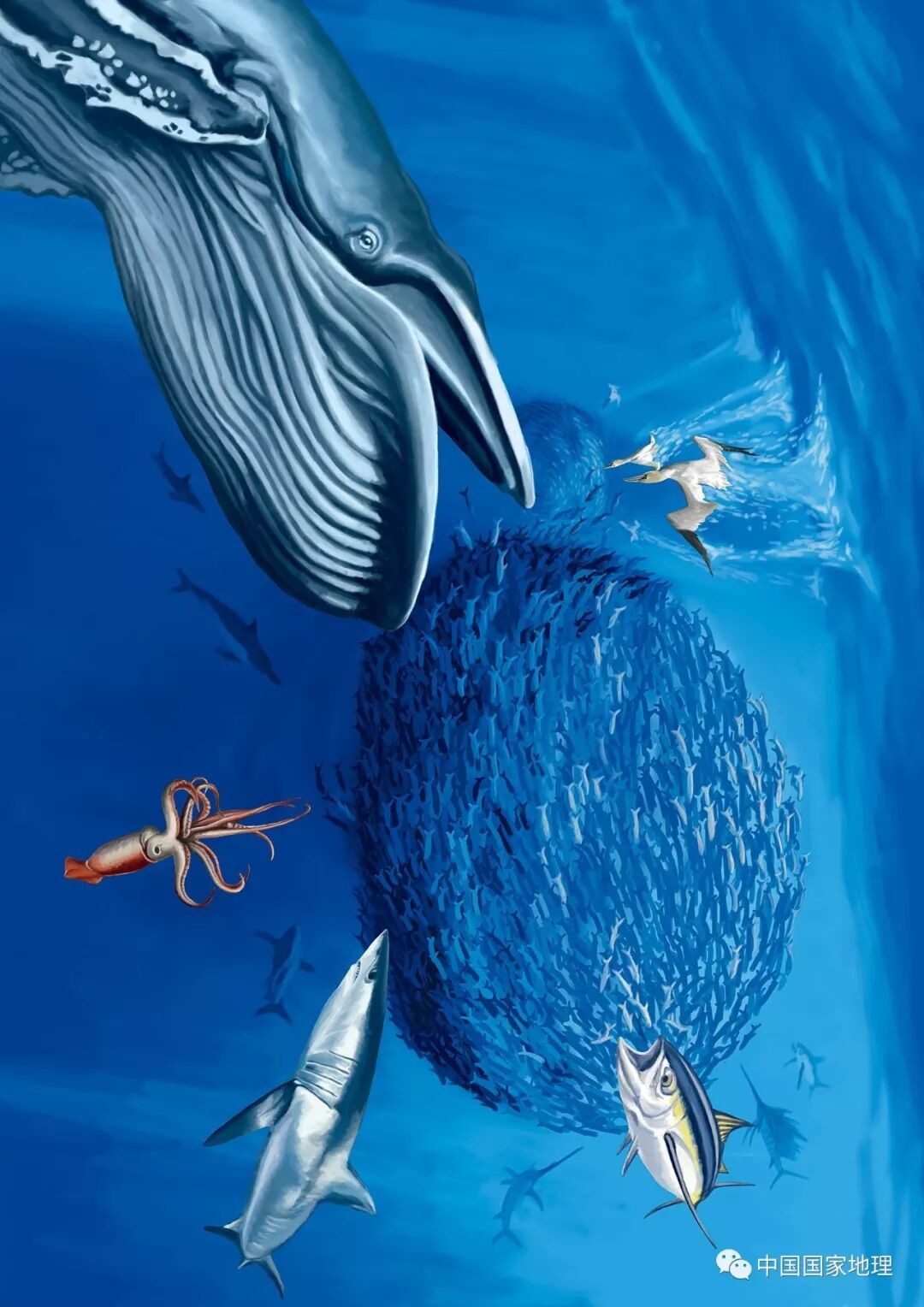 这些庞然大物最擅长打扫战场,它们常常从鱼群底部的深海中突然一跃而起,将整个“饵球”一口吞没,而后摇头摆尾瞬间又消失在深海中。