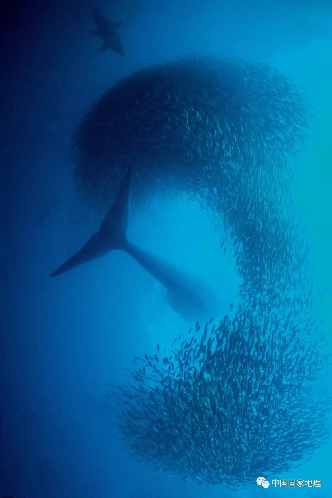 一个球的沙丁鱼就这样消失在捕食者的腹中,然而它们还有更大的群体,正在追逐着养料丰富的寒流正在迁徙。