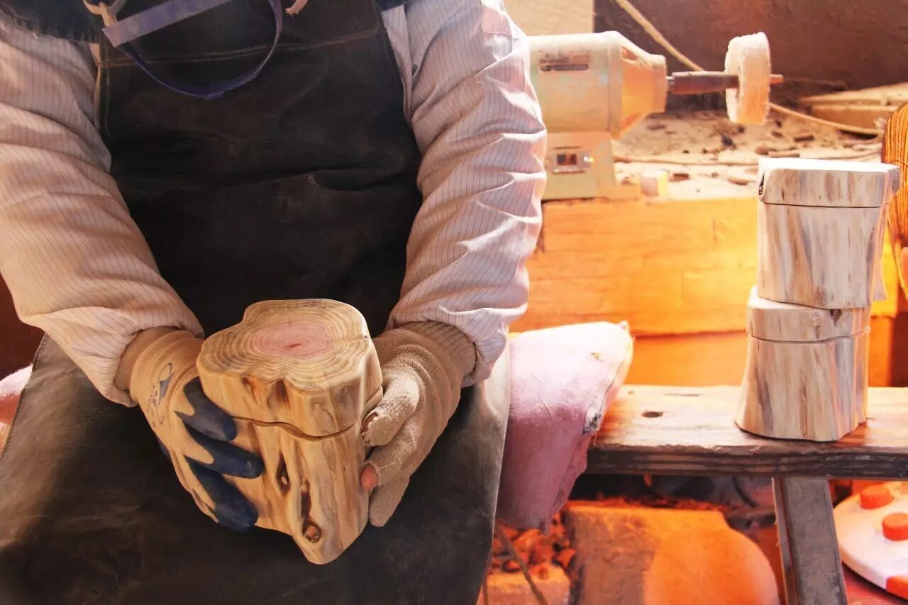 有喜工作室里满满的都是好闻的木头气味。所有作品都是手工打磨制作,又因为木头本来的纹路与质感变化,所以每一件都独一无二。
