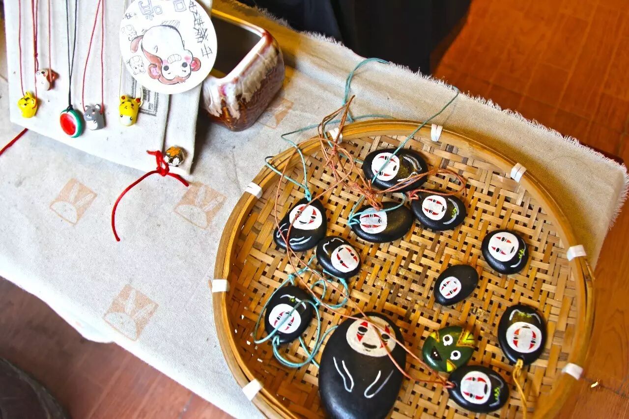 第一次见到小Q的时候,她穿着妈妈做的汉服式样的上衣,配一条麻布裙子,垂着睫毛专心地在一枚烧制得精巧的陶瓷口哨上画画,在我开口说话之前,整个小店里只有风扇吹动风铃时候叮叮咚咚的声音,安静极了。一整面墙上挂着各式各样的手绘陶瓷口哨,每一枚都是手绘,每一枚吹出的声音都洪亮,最多的造型是猫头鹰,有圆圆胖胖的,也有嘴巴尖尖的,还有企鹅和翠鸟,全都变成圆滚滚的可爱模样,如果带一个回家,不管什么时候看到它,心里应该都会变得软软萌萌的吧。