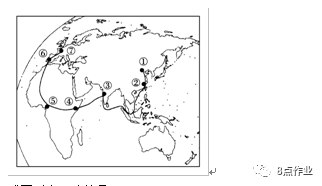 【解析】②地为亚热带季风气候,夏季高温多雨,冬季低温少雨;⑦地位于板块内部,地壳稳定;⑤地以种植热带经济作物为主,种植园农业发达,商品率高。
