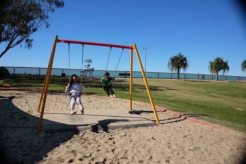 我们租了一块草坪,用来搭帐篷,相比较老外的房车,这帐篷有点像贫民。我忍受着这着五星酒店到帐篷的心理落差,一个人搞定它费了九牛二虎之力,曾几何时过惯了衣来伸手,饭来张口的有阿姨照顾的日子,连动手也显笨拙了。黄金海岸的房车营地位于海边,它的公共设施十分的完备,公用厨房和卫生间,还设有儿童的游乐园。