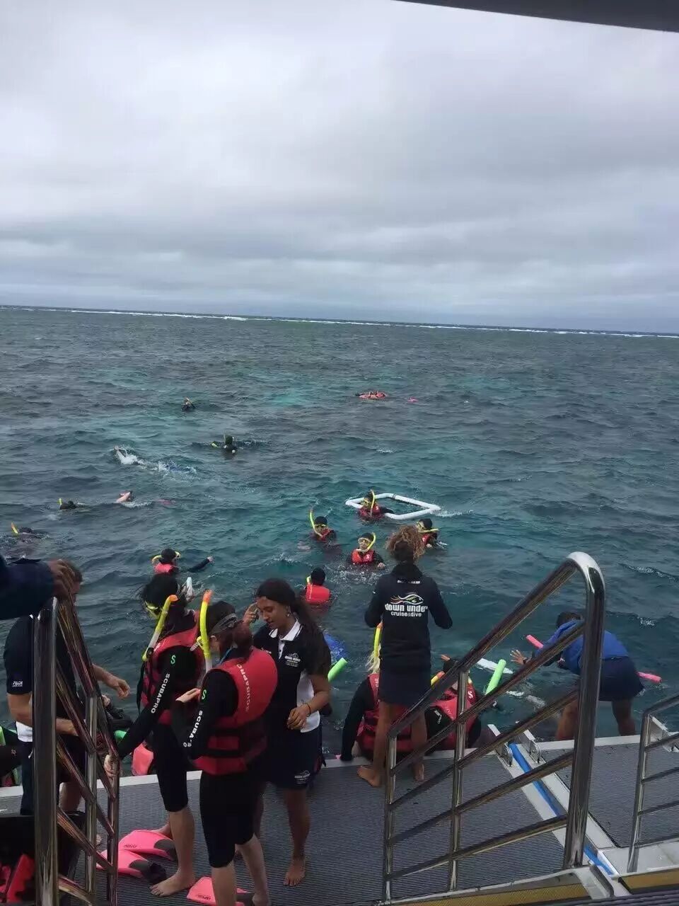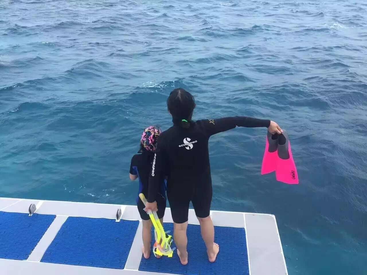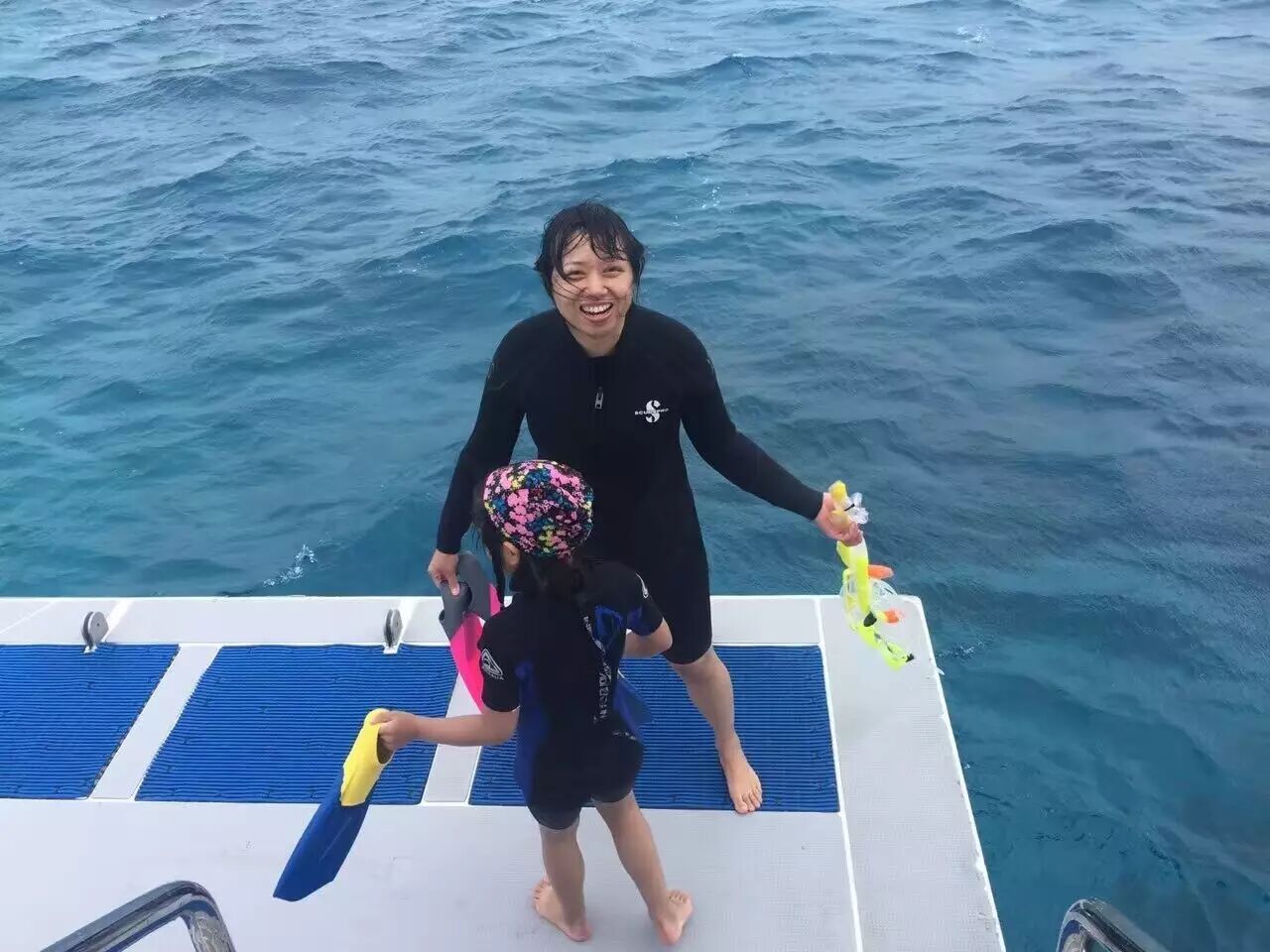 今天这是上天有下海的节目,大堡礁无愧最美之称,若有阳光将是更加晶莹剔透的美丽……,小丫头今天玩野了,在海里潜水戏鱼直至船要归航,看着她的表情,我也同样觉得幸福。