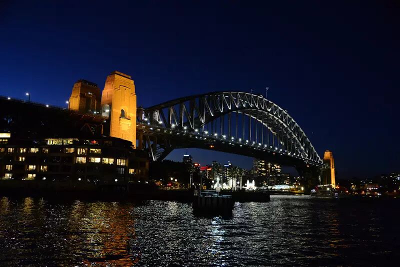 在水族馆呆了大半个下午,步出已是傍晚。悉尼港开始进入夜景模式,广场上人流渐渐分散到了边上浪漫的餐厅里。我和小花MM找了一家西餐馆,沿着海边而座,无需言语,夜色已醉人。达令港的秋夜,已是寒风阵阵,然而人们仍然喜欢沿着海岸而坐,边享用晚餐的同时,享受景色。