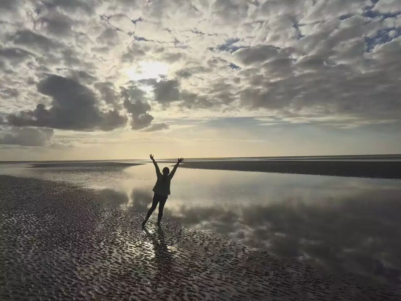 我们抵达维赫湾时,那片海让我们有种地老天已荒的错觉。在海面我们像疯狗一样奔跑欢笑撒野,一扫路途的劳累,跳的太高,我一个不小心掉在了水里,湿身,也差点湿了护照,大伙看的更欢乐了。乐极生悲啊,玩的过了头,静静湖畔,生命律动,看鸟,看孩子,看水,不亦说乎。一路狂奔,牧场狂野,看牛,看马,看紫色芦苇花,不亦乐乎,赫维沙地,夕阳残血,看够,看倒影,孩子跑着,一路水上漂,不亦说乎。