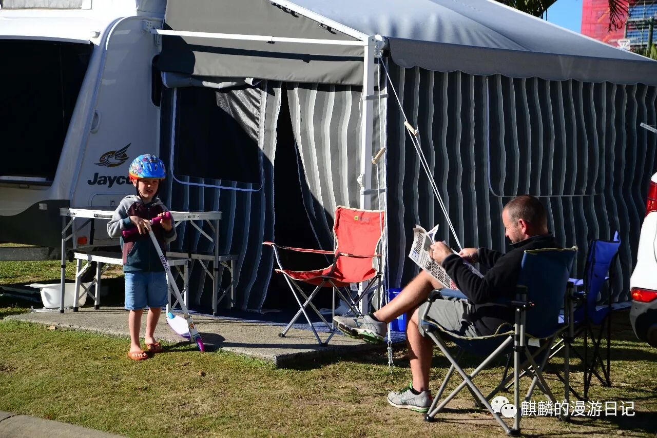 等到我们慢慢开往城区露营地的时候,边上开越野车的澳洲壮汉,朝我们双手泼水状,原来我开在车道的中间,一车占两道。