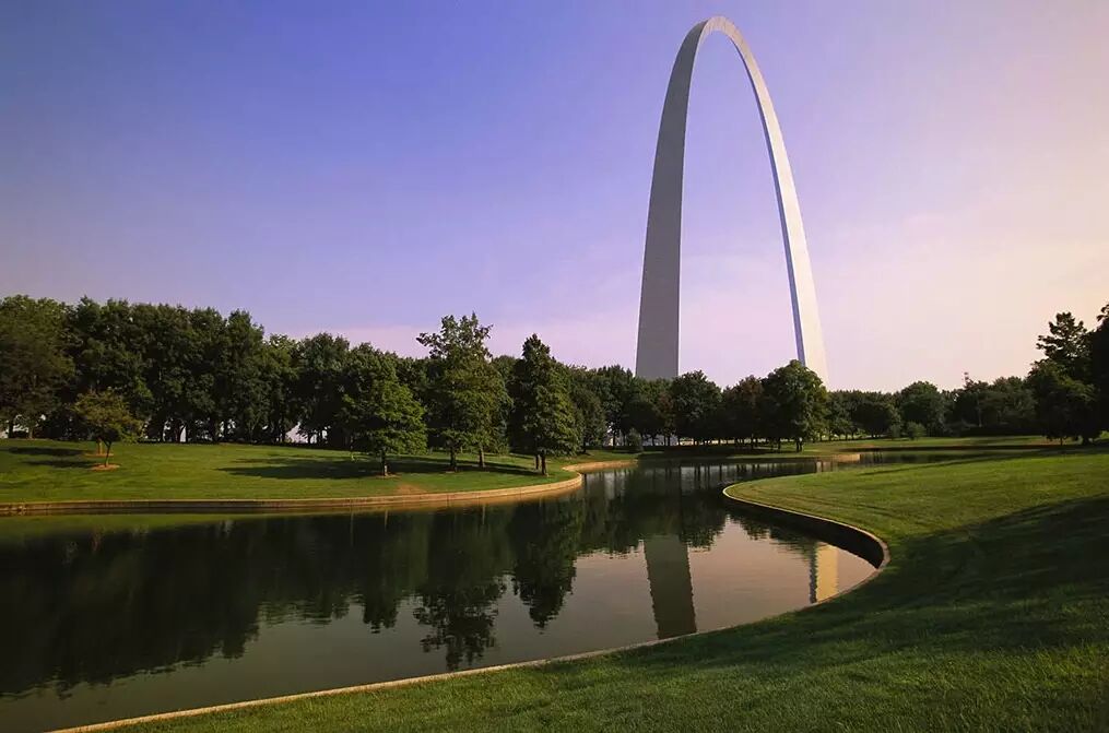 圣路易弧形大拱门:是美国向西开发的一个象征,走过它便意味着进入美国西部大地。拱门跨度将近200米,宛若一道长虹飞架于大地之上。
