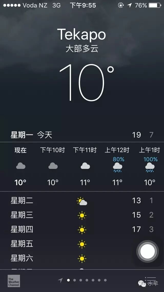 南岛,我们选择的是顺时针自驾游。老实说,刚开始萌生去新西兰旅游的想法,是源于一张Tekapo好牧羊人教堂的星空照片。教堂与星空的结合,让少女心瞬间膨胀。虽然南岛玩下来以后,发现当初让自己少女心膨胀的星空只是各种惊艳中的一种,但做行程时还是把Tekapo放在重要的位置。既然看星星那么重要,那么新月且无云的日子则是黄道吉日。新西兰的天气变化很快,苹果上的天气预报只有提早一天才会比较准确,自己能够把握的是新月(简单来说就是远离农历十五的日子)。因为行程的前几天都是初五前后,最后决定把看星星的Tekapo和Mt Cook放在行程的开始,再来期待遇上一个好天气。