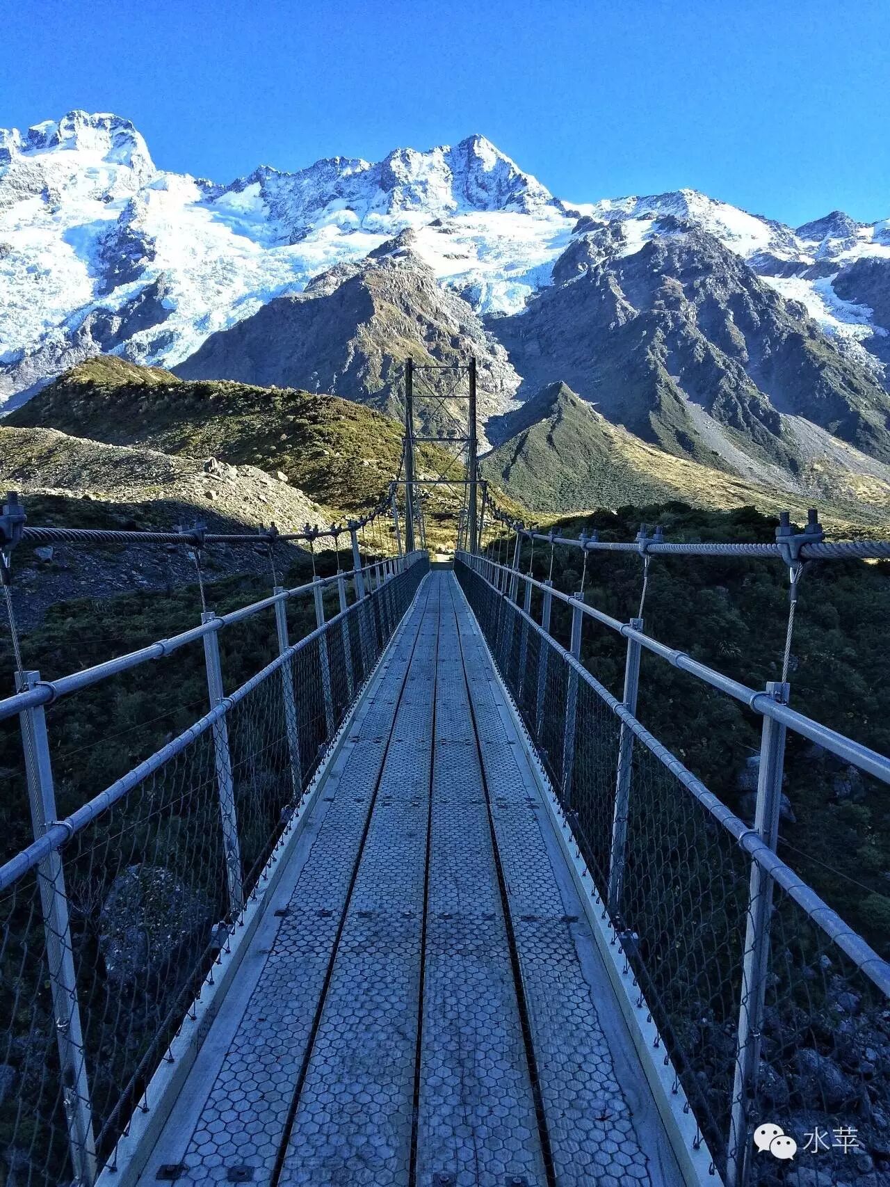 近距离靠近库克山,吊桥在两座悬崖之间,每走一座吊桥都可以欣赏到不一样的景色