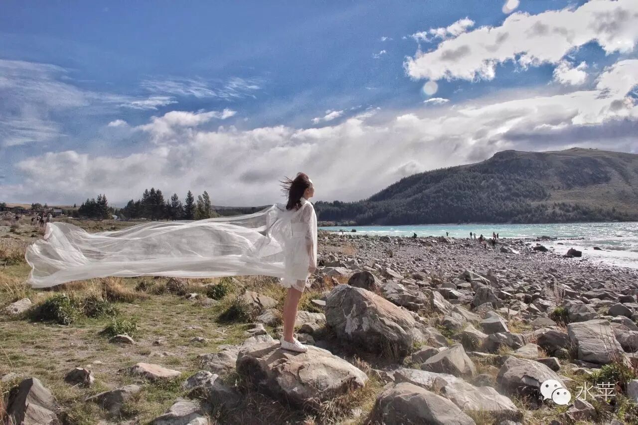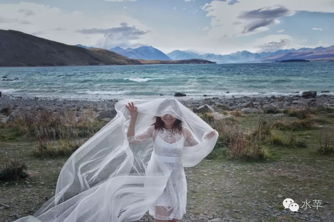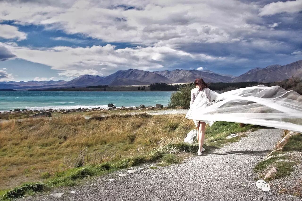 第二天一早醒来,决定离开前再去Lake Tekapo看看。天气明显比前一天好太多了,但是风还是有点大,没看到湖面平静如水的感觉。为了弥补前一天的小遗憾,今天再补拍了一辑头纱系列。别问我为什么要穿这样,因为这是度蜜月度蜜月!!!