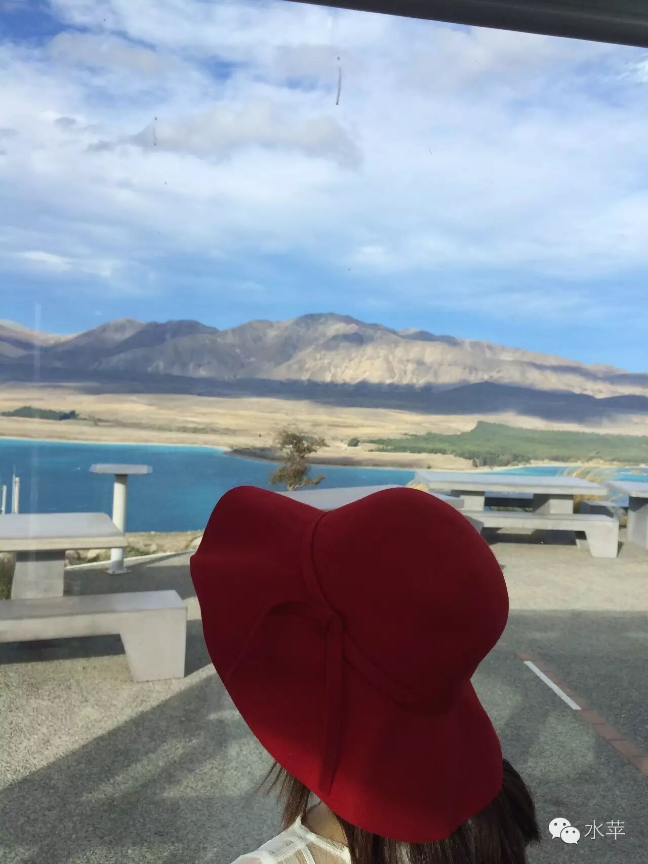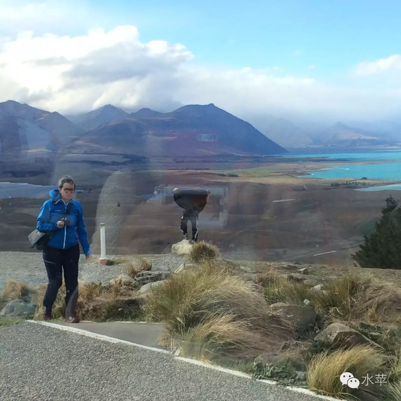 在Tekapo遇上了超强劲大风,特意带出来拍照的头纱也被吹翻了,波涛汹涌的湖水一直冲击拍打着岸边,耳边是呼啸而过的风风风。不得不说,天气不一样,画风也会很突变。只能安慰自己,波涛汹涌的Tekapo也是很难得。原打算在好牧羊人教堂旁好好感受奶蓝湖水的静谧,瞬间因扛不住这强势的风速而继续下一个行程——约翰山。不过,至今也没有想明白,当时没上山就感受到如此猛烈的风速,为何我们两个还会傻傻地继续上山。约翰山是私人领域,只有白天才允许私人车辆开车上山,上山处设有收费站,5纽币一辆车的通行费,到了晚上就只有跟观星团才能上山。收费站的工作人员一再叮嘱我们开车上山必须小心,因为这是她在收费站工作以来看到过最大风的一次。一路开车上山,明显感受到车在“漂移”,到达山顶躲在车里也能感受到车在轻微抖动,我的瘦小身板完全抵抗不住这种风速,每走一步都有种自己快要被吹走的恐怖感。