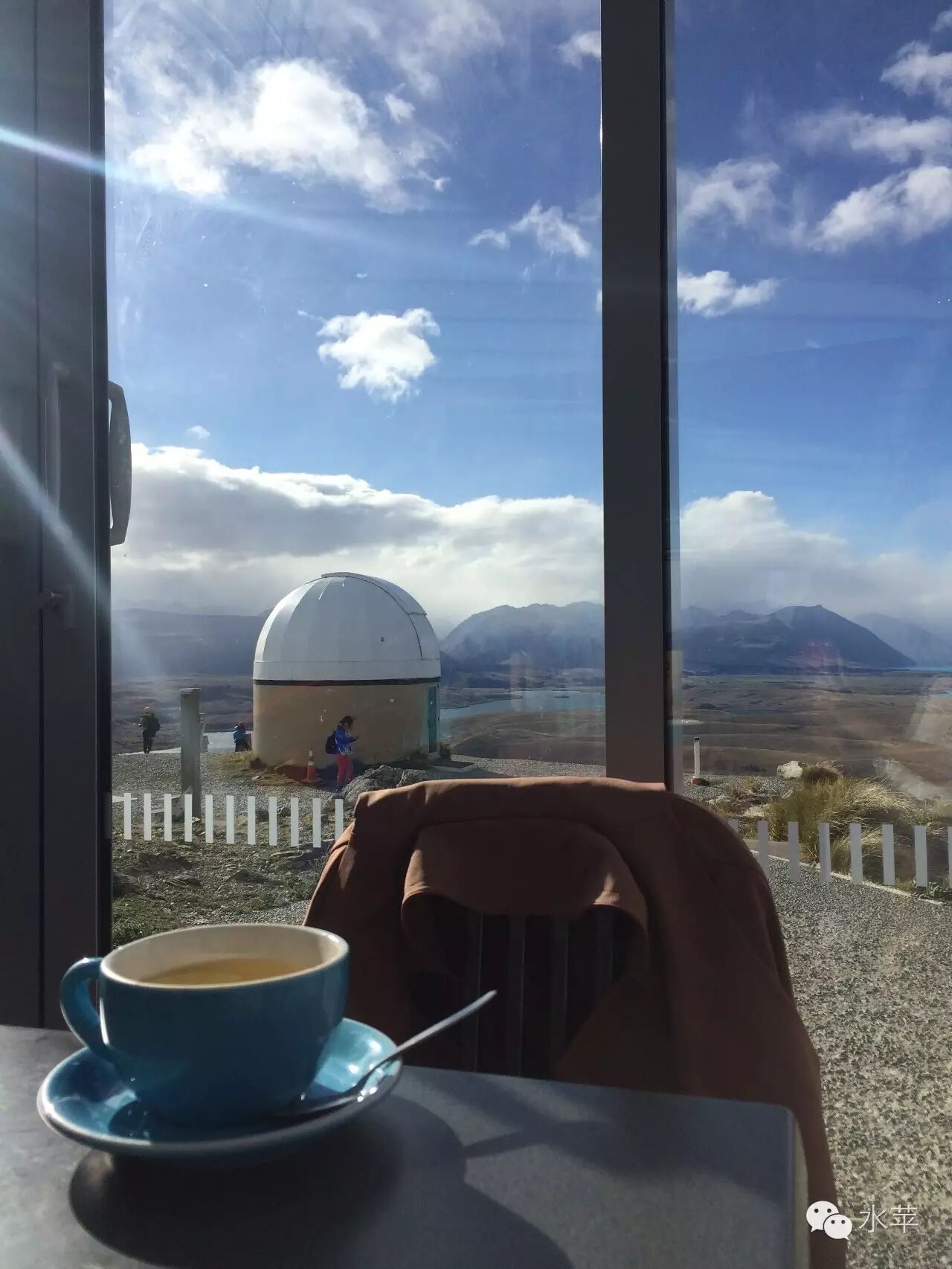 约翰山位于Lake Tekapo湖畔,在山顶可以俯览Tekapo小镇,山顶设有天文站和落地玻璃咖啡厅,晚上可以报观星团观星。约翰山天文台由坎特伯雷大学建立,因其有利的地理位置,是新西兰太空研究的重要基地,也是世界四大最佳观星胜地之一,被世界天文学家公认为是观察银河系及宇宙的最佳地点。上图为在Mt John上的咖啡厅,隔着玻璃拍下的Tekapo俯览图。