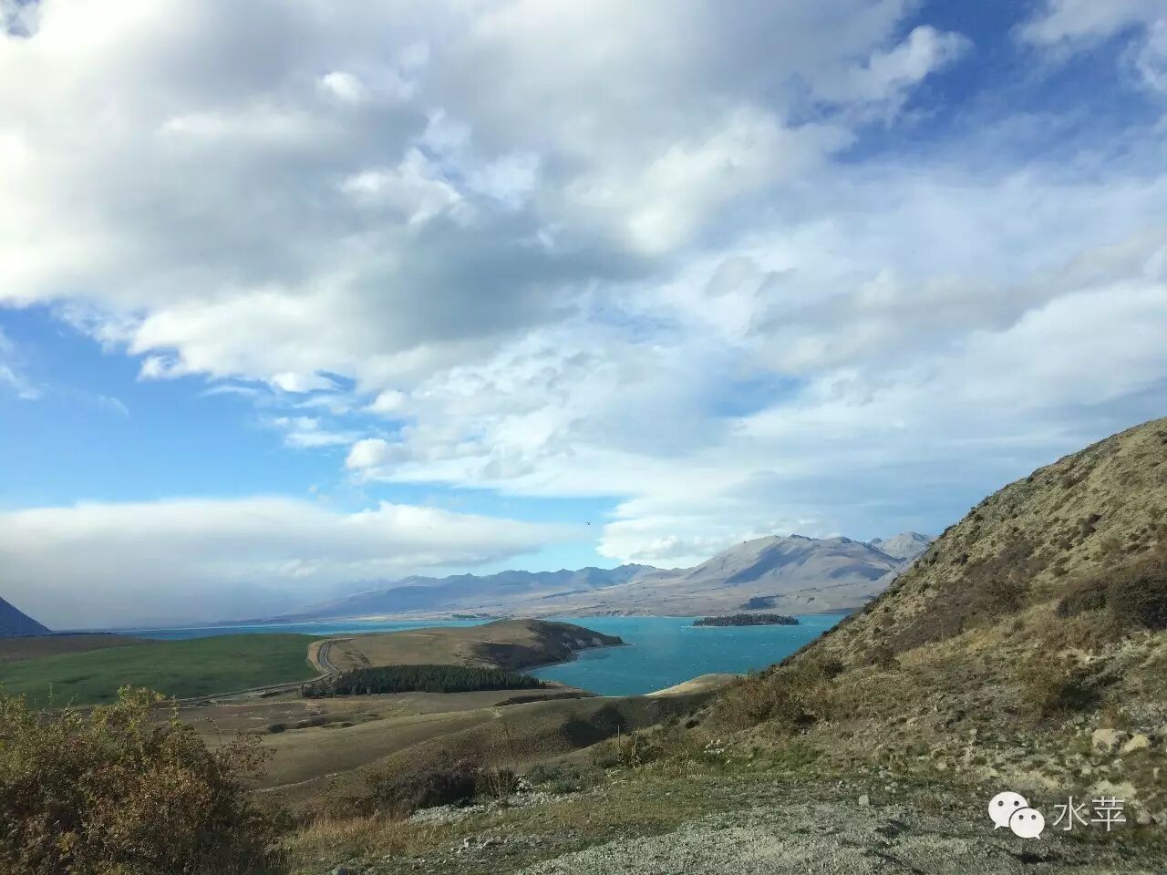 基督城距离Tekapo226公里,开车大概需要三小时。因为还处于左侧行驶的适应期,开车还是比较慢比较小心的,而一路上的美景又让我们兴奋不已。