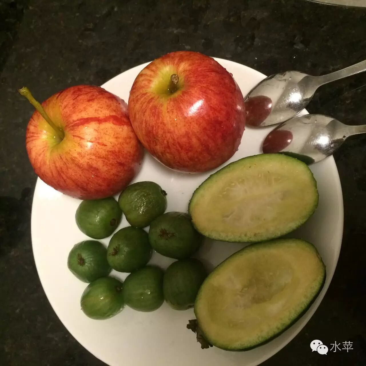 新西兰当地水果:苹果、kiwi、斐济果,斐济果是特酸爽的口感(斐济果口味的果汁超级好喝的),kiwi长得好可爱但比不上平常吃的那种大奇异果好吃