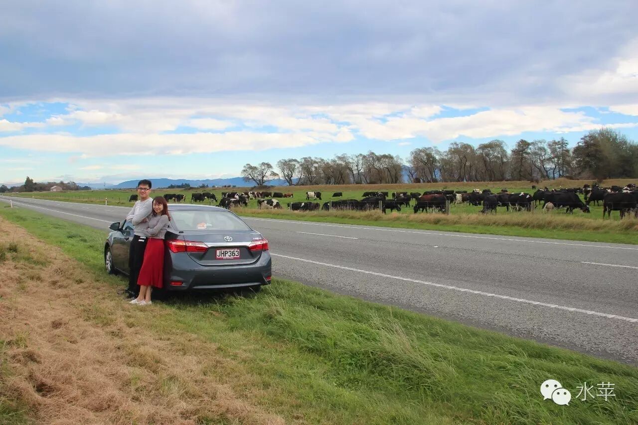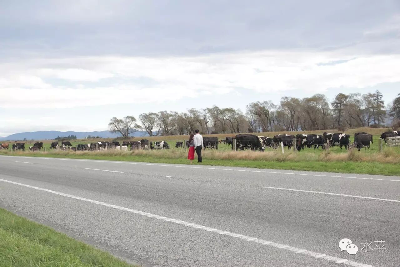 第一次看到牛群,忍不住下车跟他们拍照。事实证明,在新西兰看到的动物要比人多得多。
