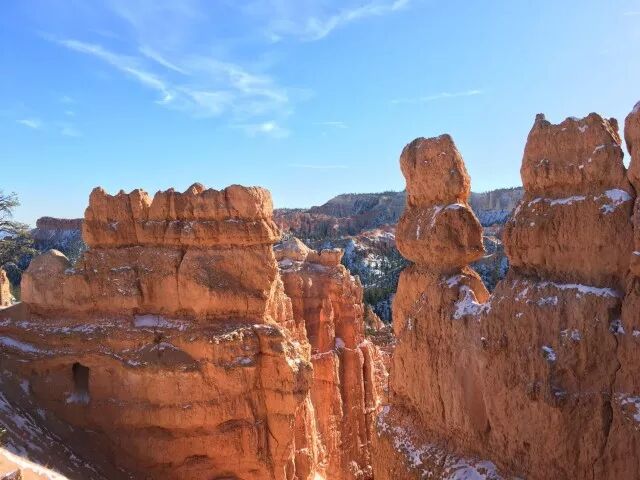美不胜收,叹为观止。再加上这次有积雪,景色更加丰富。与Zion需要蓄力登高才能发出“Woo~~~”看见峡谷全貌不同,Bryce一上来就给你放一个大招,把最漂亮的景色呈现了出来。