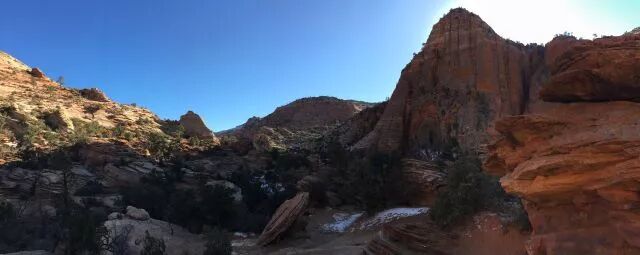 第一天爬完了Angels Landing,第二天简单在园子里面转了转拍了拍照,就继续开往了Bryce。Zion距离Bryce非常近,开车大概一个多小时就到了。去到Bryce之前我们去爬了上面说的那条Canyon Overlook Trial。