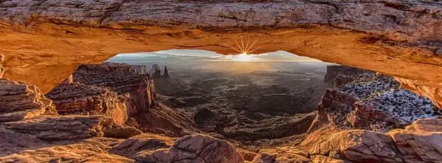峡谷地公园最有名的地标,就是梅萨拱门,Windows 7系统的一款经典桌面就是它。到达拱门的小道非常短(0.3英里),所以大家不用担心在烈日下徒步的问题。最佳的拍摄时间是日出。