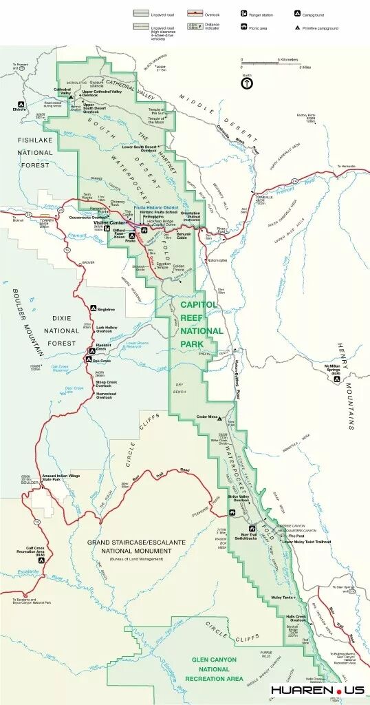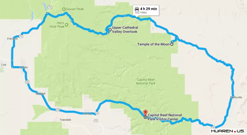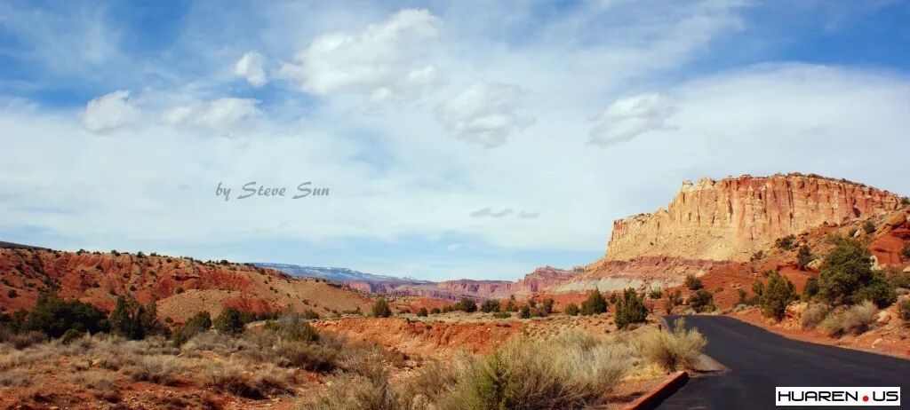 圆顶礁国家公园说大不大,说它小其实也没有那么小。犹他24号公路(UT-24)横穿公园,这也是连接布莱斯峡谷与拱门、峡谷地路线中的一条。鉴于上述的“圆顶”和“礁”在24号公路上都能看见,难怪很多游客为了把时间留给其他公园,就直接“车览”圆顶礁了...