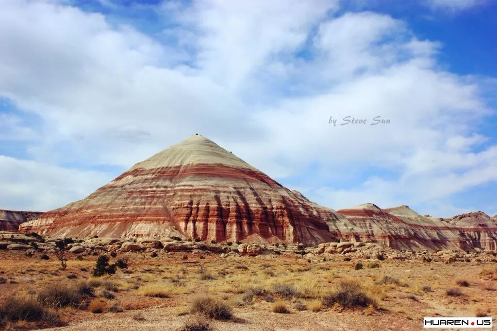 沿着24号路往东开出去,找到Caineville Wash Road,一路开就能到太阳神庙和月亮神庙。“一路开”说的轻巧,其实这一路可真不好开。因为这是一条土路,一路颠簸,小猴强烈建议高底盘车辆,最好还能加上四驱。如果遇上天气不好,路面泥泞,小伙伴们就歇歇吧,估计拖车钱也够一个月的生活费了。