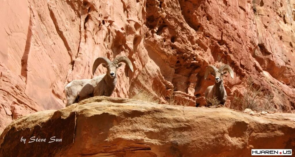 徒步Grand Wash时对视大角羊(bighorn sheep)