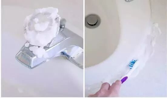 水池的瓷砖上也容易留下锈渍、水渍,可以用上牙膏和废旧的牙刷清洁,牙膏中含有摩擦剂成分,可以去除顽固的水渍、锈斑,其中的表面活性剂也能快速溶解掉油污。