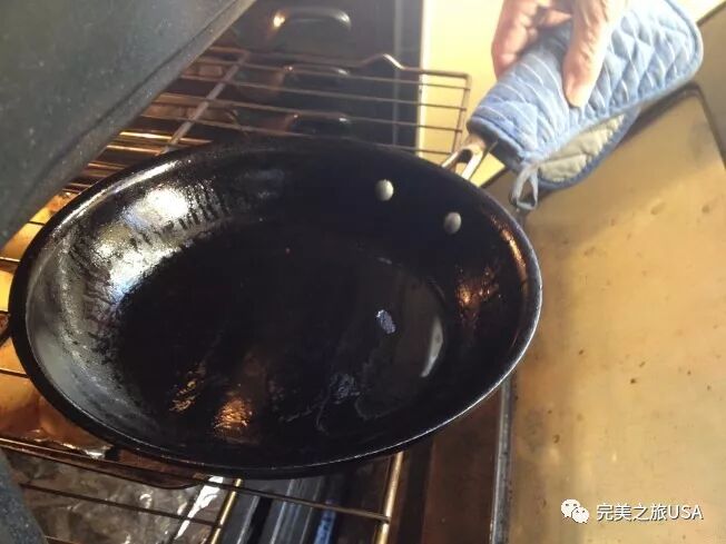需注意的是烘烤时间不需过久,也不要把表面的油脂清除得过分干净。保留在锅具表面的油脂,可使锅子保持不沾黏。上油与烘烤的过程可重复进行三次,以加强保养效果。