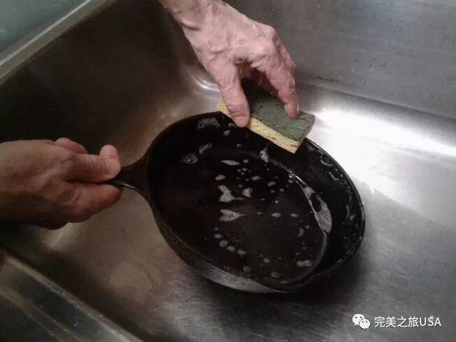 “Bon Appétit”网站访问了两位铸铁锅专家凯利(Mark Kelly)与怀特汉(Mike Whitehead),他们表示,如果只有表面轻微生锈,可利用较粗的海绵或菜瓜布,搭配中性清洁剂与温水刷洗。