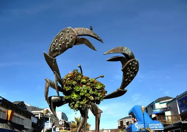 渔人码头过去曾是意大利渔夫的停泊码头,如今已是旧金山最热门的去处,终年热闹非凡。杰弗逊街和泰勒街交汇处的巨蟹标记是渔人码头的象征。各国观光客来到旧金山都要来这里享受一顿新鲜美味的海产宴。