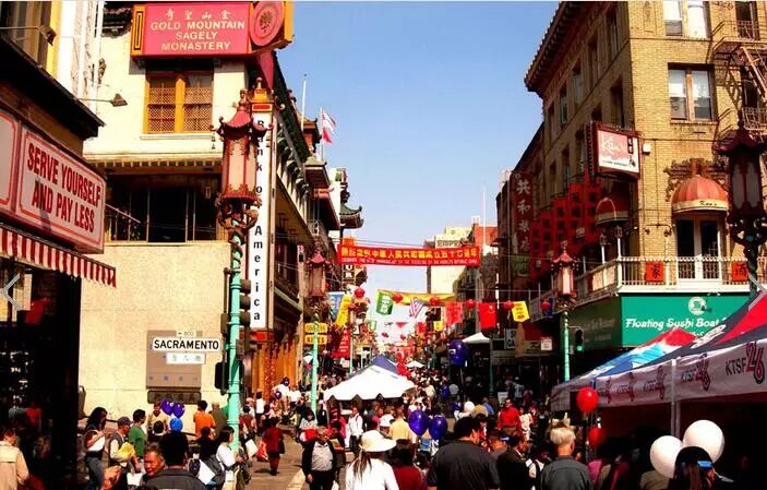 唐人街是华人集合场所,好去处如天后古高庙(The Tin Hou Temple),旧金山好运饼干(Fortune Cookie:饼干里包着由议长写有吉祥话语的字条)工厂, Portsmouth广场等。