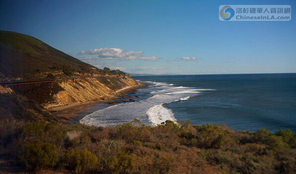 这里有点个人觉得不太舒服的就是很多都是侧坐,因为不太喜欢侧坐,所以基本上一直是呆在自己的车厢里的。后面开始上图了。就不多做解释了。大概在出了la一个多小时就开始有海了,之后就是各种的沿着海岸线走。