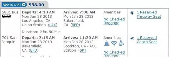 起点:洛杉矶,终点:旧金山如图所示,会出现各种不同的路线,刚开始我很迷惑为什么有的还需要坐bus,但是经过此次旅行两次坐火车的经历之后发现,因为不是所有的城市都有火车站,所谓的bus就是城市和火车站之间的中转车。有固定的时间和地点,一定要注意查看车票上给的时间和地点。火车路线,之后会出来各种不同火车路线,鉴于想看看有没有沿海走的路线,之前没有什么经验,所以开始在官网上看几个不同路线的区别。